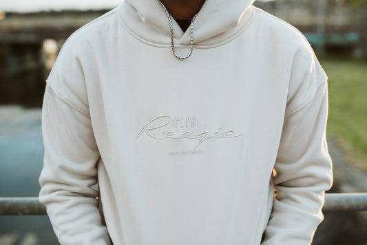Plush fleece blend with a drop shoulder aesthetic. Soft sand colour